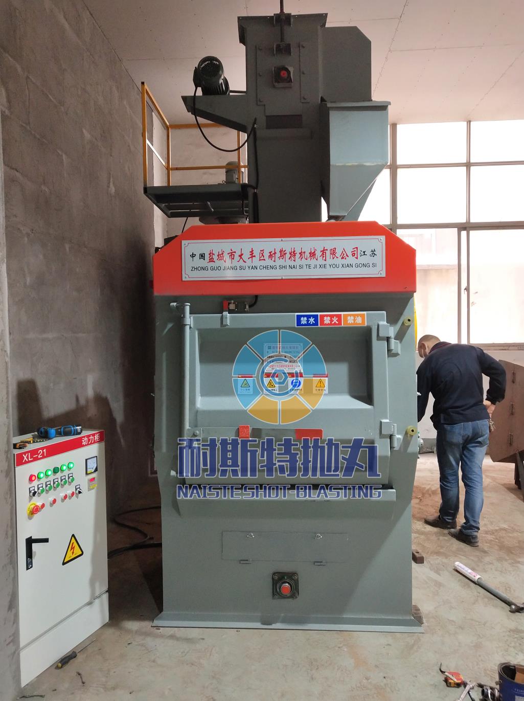 步驟 5、將橡膠履帶放入室體。對于更大的橡膠履帶,請在室體頂部大概小孔蓋板,將不銹鋼絲擰入懸掛裝置中進(jìn)行安裝。也可以在拋丸裝置的離心葉輪上安裝手動葫蘆來驅(qū)動橡膠履帶;